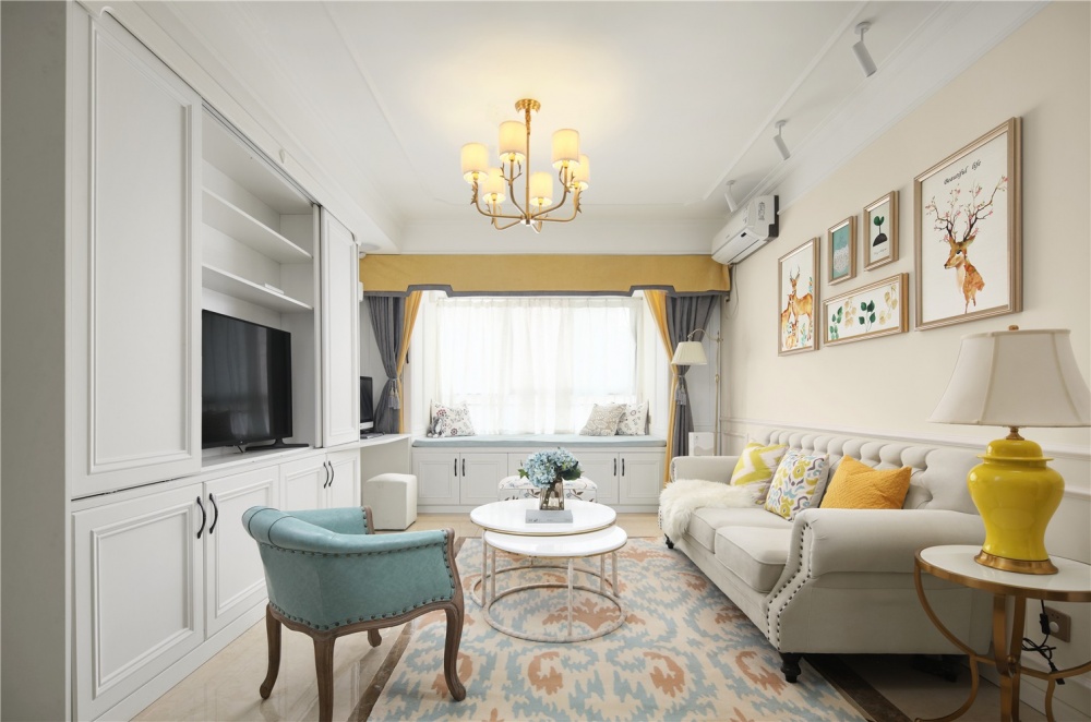 客厅窗帘装修效果图浅色系美式婚房,有你世界都亮了美式经典客厅设计图片赏析