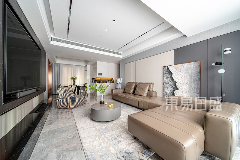 广钢新城四居室-现代简约-客厅实景图:从各个角度均有线条延伸、交错,各个体块相互连接,给予空间丰盈而不谄媚的观感,黑白的搭配就如钢琴一样装修实景图,让整个空间更加富有美感