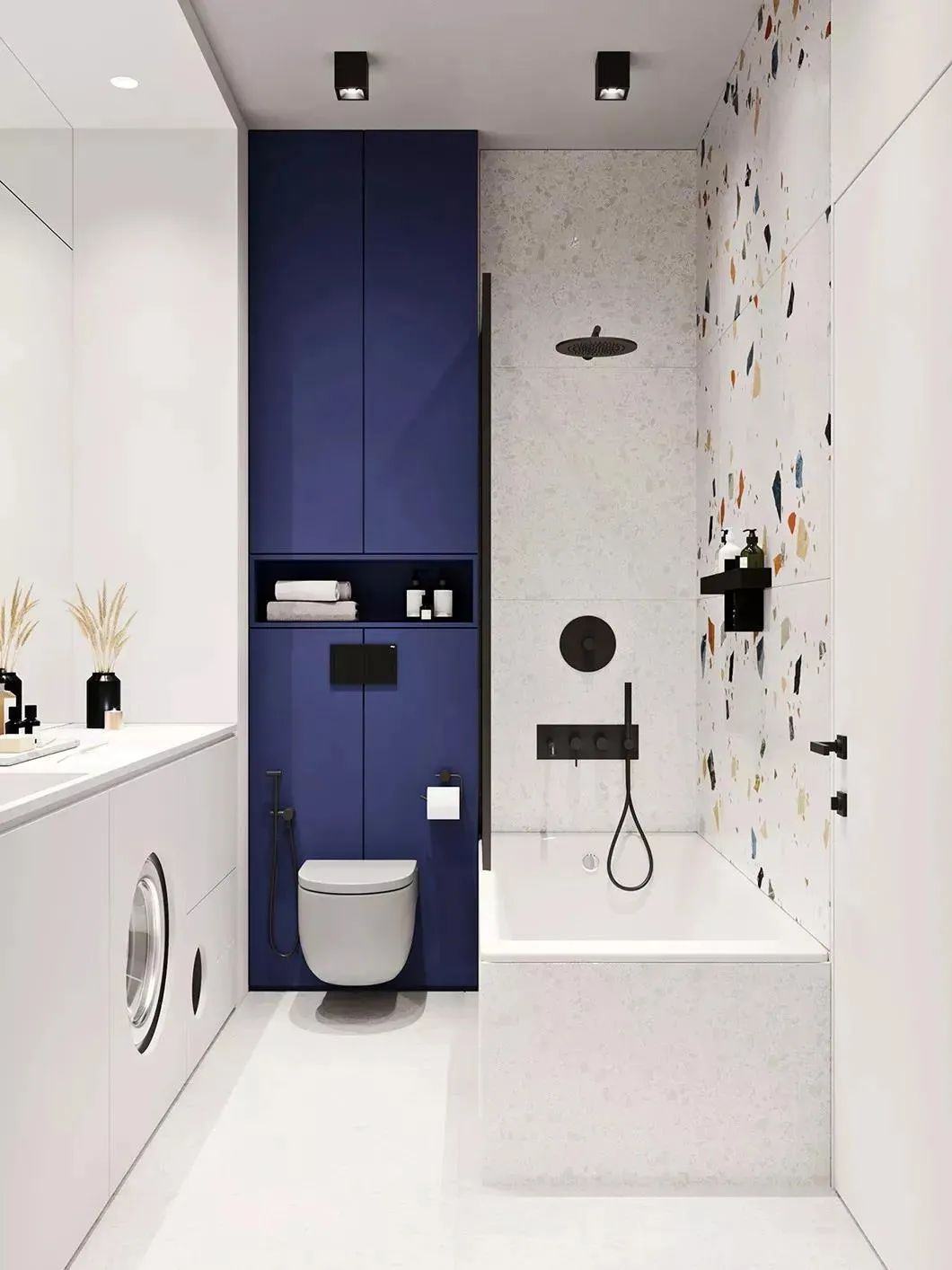 方方正正的卫生间自然最好,但是卫生间设计时,内部格局总会有一些错位或者夹角。可以通过合理的空间规划,将卫生间内的夹缝空间,通过安装置物板,做成类似壁龛的形式。