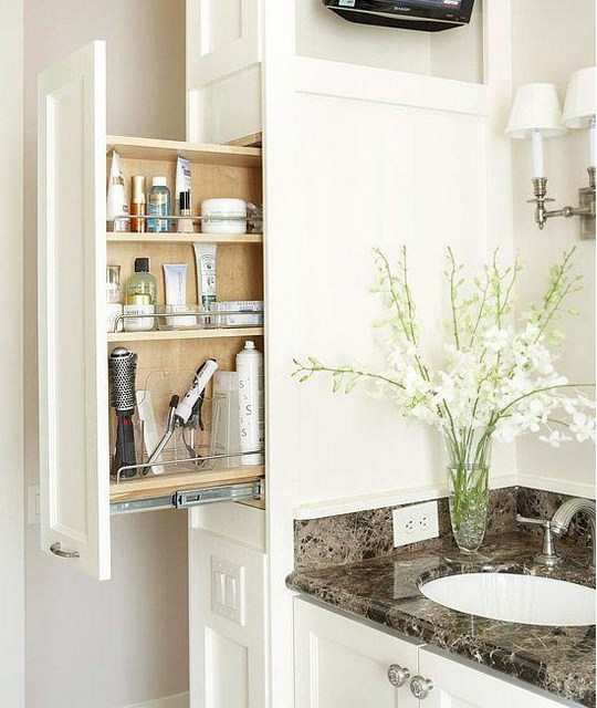 利用马桶边上的小区域做个抽屉式收纳柜,丰富收纳空间,对于喜欢在马桶上看书看看报玩手机的人来说,旁边抽柜的设计大呼实用。