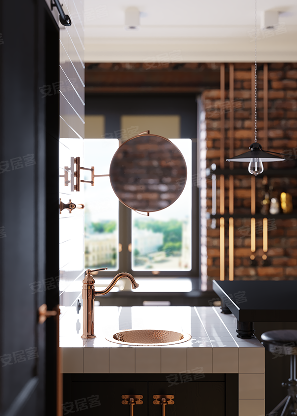 工业风用大面积的裸砖、金属管道、水泥地、混凝土组合成粗犷、神秘,又带有一些颓废旧工业气息的空间,极具不羁与个性。