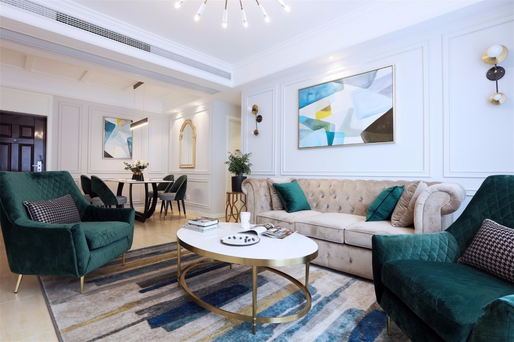 客厅窗帘装修效果图美式轻奢110平米住宅设计其他客厅设计图片赏析