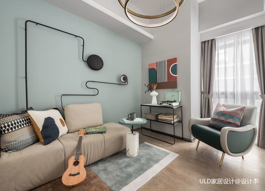 客厅窗帘装修效果图温馨53平北欧样板间休闲区装修北欧极简客厅设计图片赏析