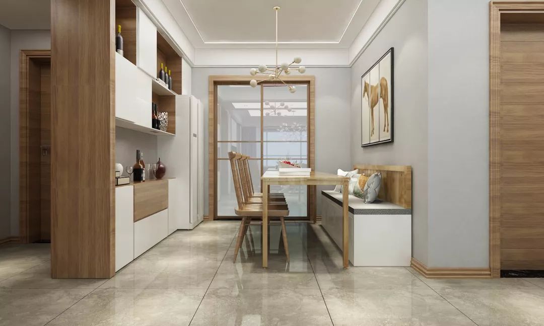 客餐厅以走廊自动隔开,在设计上一样漂亮实用。如果户型较大,不用特意考虑如何去节省空间时,可以多设一些能提升美感和档次的设计。